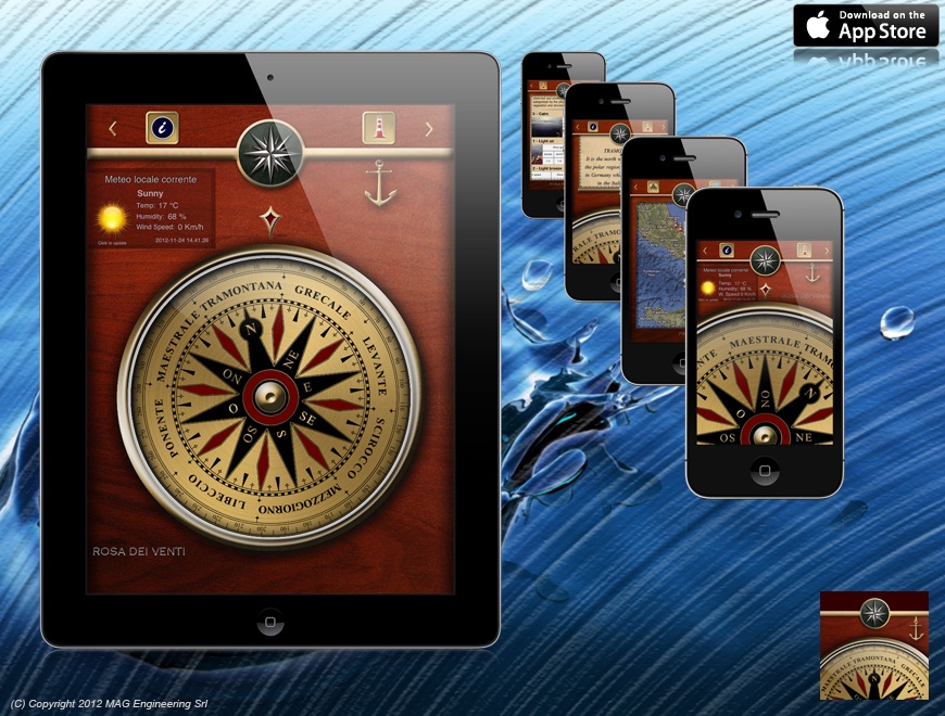 ROSA DEI VENTI HD: RosaDeiVenti is the only AppStore application that indicates the name and description of the wind based on the Wind Rose (e.g., LEVANTE, LIBECCIO, SCIROCCO, etc.).